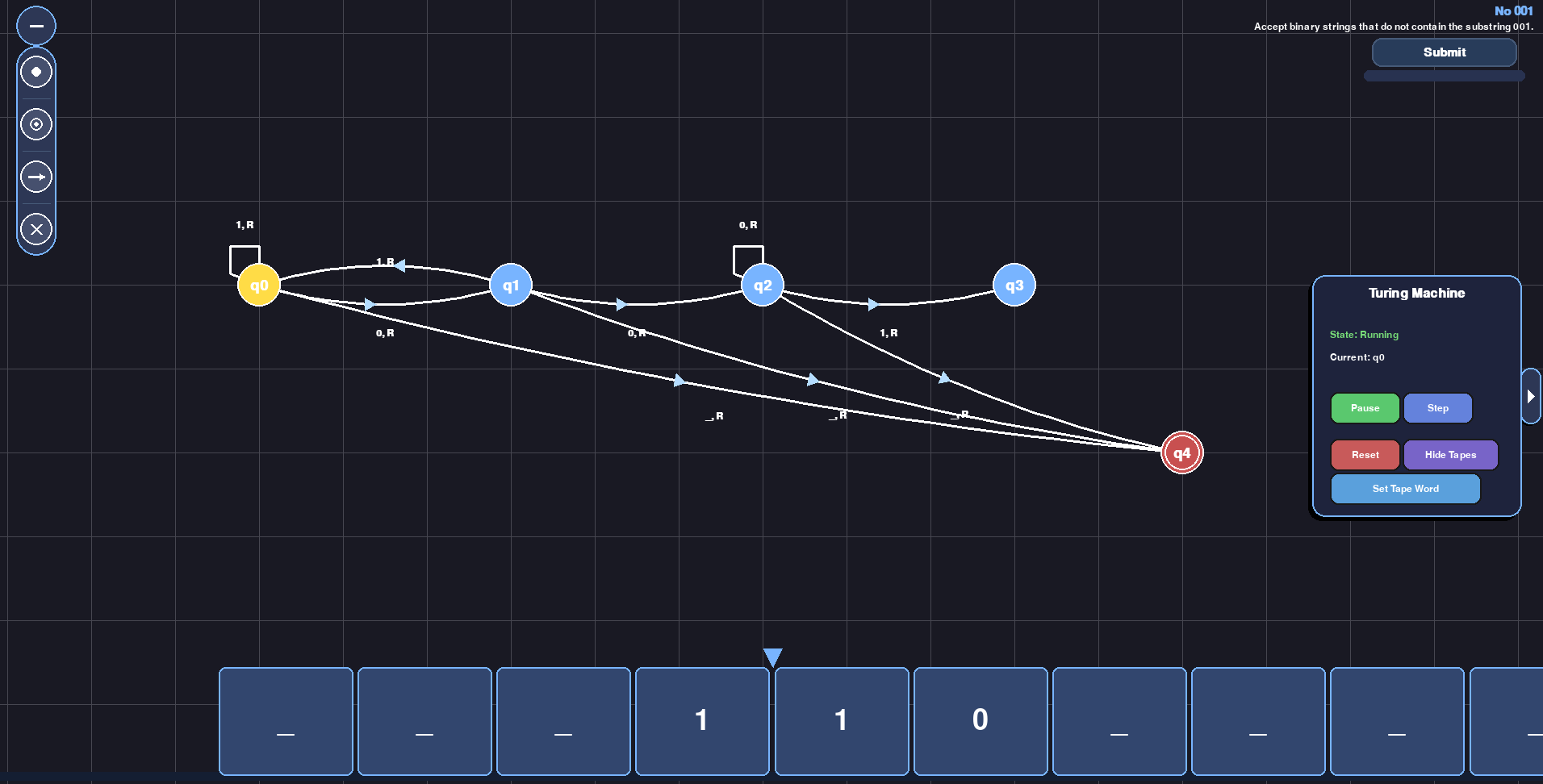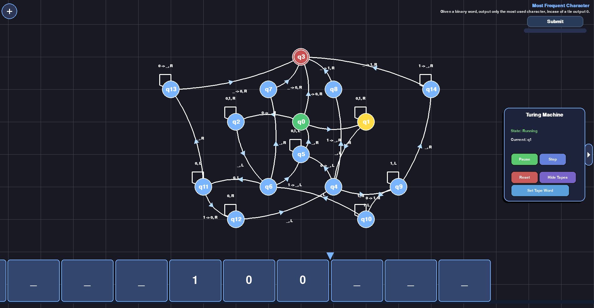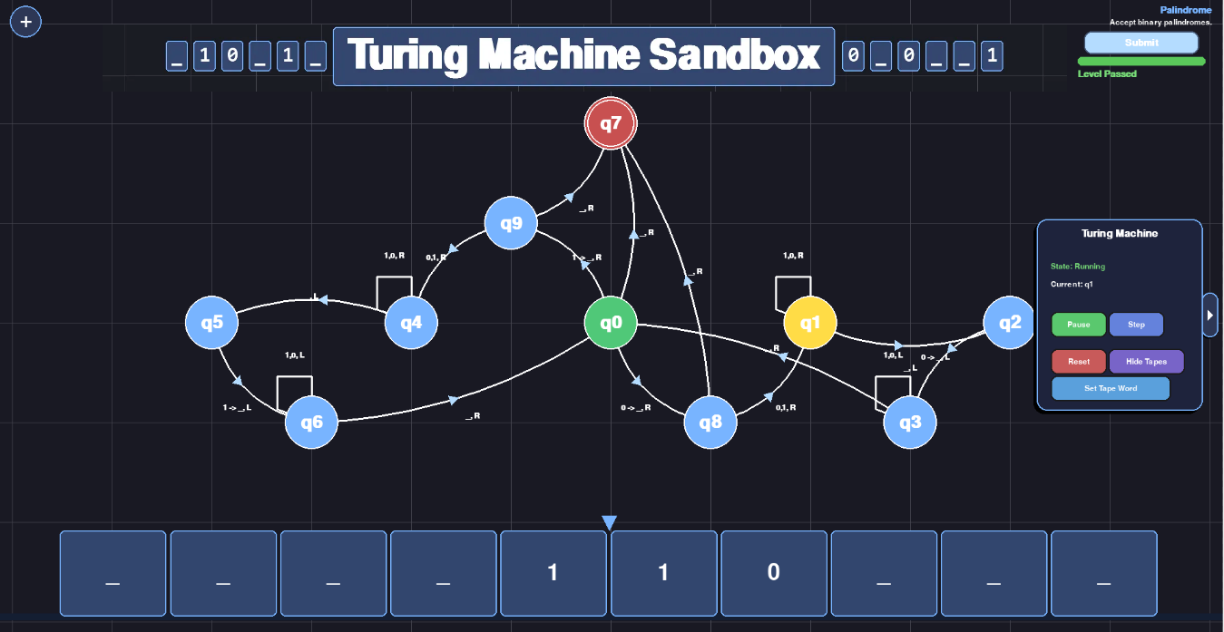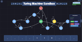 - Sandbox (Create and test any turing machine)